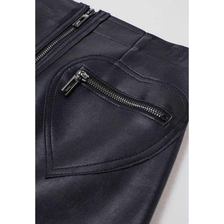 Add an edgy, statement-making piece to your wardrobe with this Black Leather Mini Skirt. Crafted from premium leather, the skirt offers a sleek, smooth, and luxurious finish.Designed as a mini skirt, it sits well above the knee for a bold and confident look. A full-length front zipper serves as the main closure, while two decorative horizontal zippers positioned like heart-shaped pockets add playful, eye-catching details.Perfect for parties, nights out, or street-style looks, this skirt combines luxury leather with a modern, edgy aesthetic. Pair with heels, boots, or crop tops for a standout ensemble.