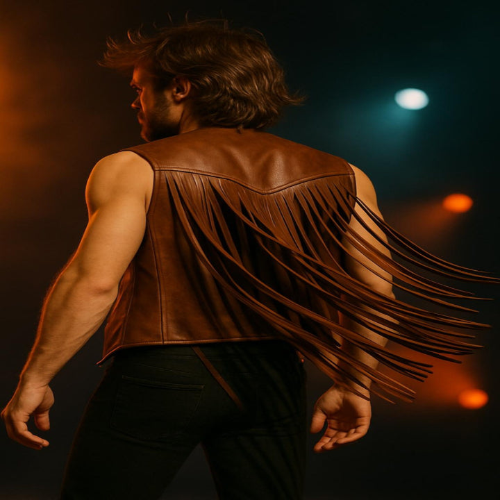 Handmade Brown Leather Fringe Vest for Men – Western Cowboy & Rock Stage Waistcoat