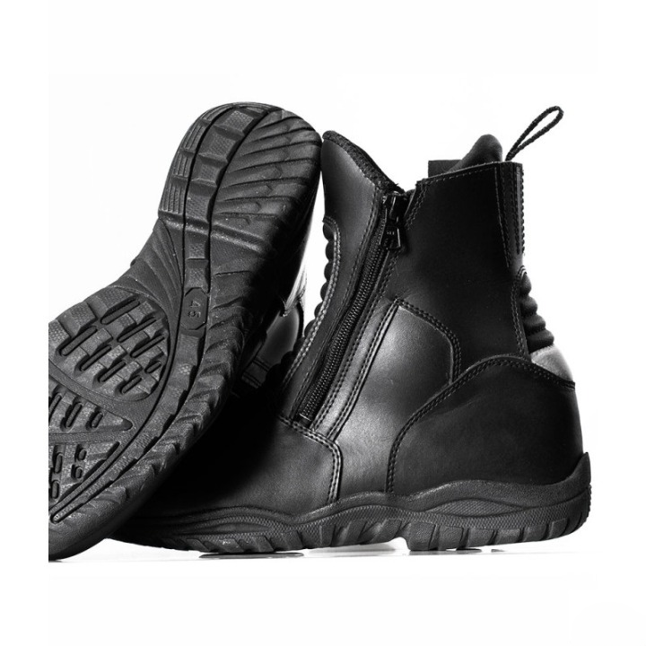 Built for performance, protection, and durability — these black tactical combat boots are perfect for demanding environments. Designed with a rugged rubber outsole for maximum grip and a side zipper for quick on/off convenience, these boots offer both practicality and strength. Whether you’re on duty, hiking rugged terrain, or tackling tough jobs, these boots deliver comfort and reliability all day long.