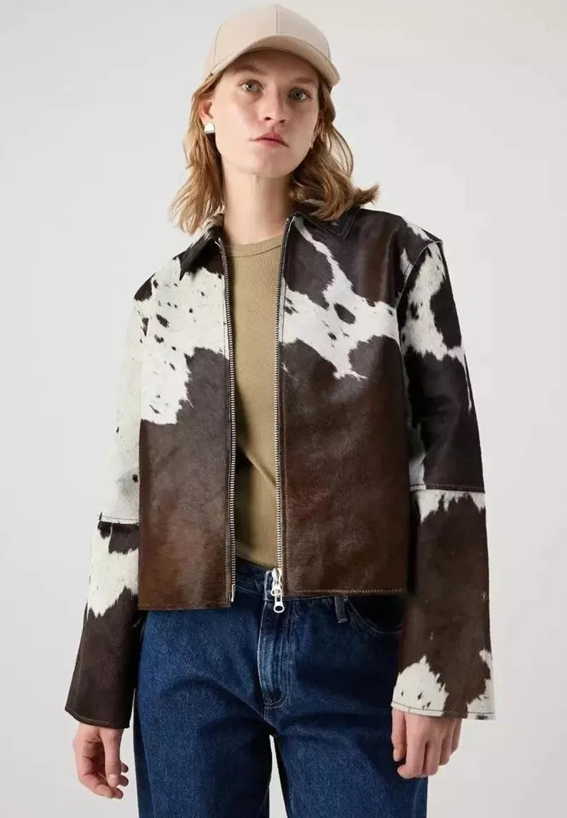 Women Premium Cowhide Leather Jacket | Natural Hair-On Cow Skin | Handcrafted Western Biker Style | Unique Streetwear Coat