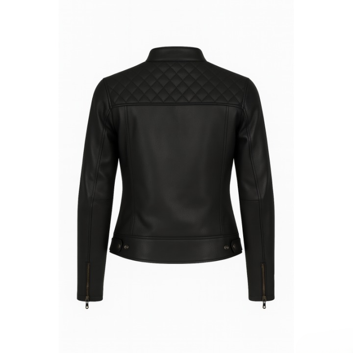 this women’s black leather motorcycle jacket combines sleek biker style with premium comfort and protection. made from high-quality leather, it features a slim fit cut tailored to flatter the feminine figure while ensuring durability and abrasion resistance. the standout quilted shoulder and upper chest panels add a touch of classic café racer style, giving it a refined yet rugged appeal. designed with a full front zipper closure, zippered cuffs, and multiple pockets for secure storage, this jacket balances practicality with fashion. versatile enough to wear while riding or as a statement piece with casual outfits, it offers both protection and timeless style. reinforced stitching and premium leather ensure long-lasting durability, making this jacket a perfect choice for women riders who want both safety and elegance.